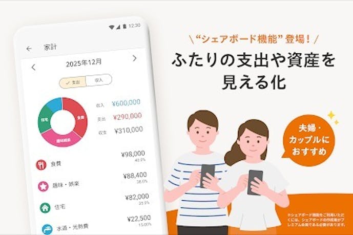 共有家計とお小遣いを分けて管理できる! 2人の財布を同時に整理できる無料家計管理アプリ |