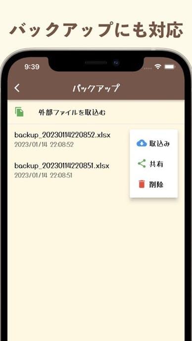 データはGoogle Driveにバックアップでき、Excel出力にも対応。