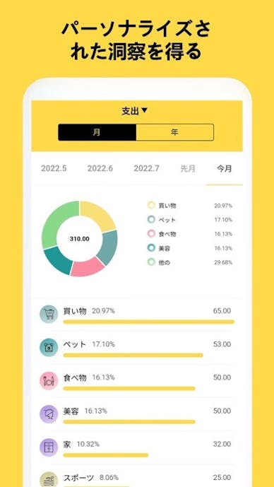 食費や趣味の出費を直感的に見直せるのが助かるアプリです!