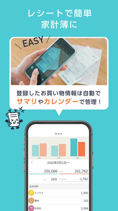 iPhoneユーザーはこちら Androidユーザーはこちら第17位. 家計簿 レシーカ:レシートを撮影するだけで支出が記録されてポイントも貯まる!楽しみつつ続けられるお小遣い帳アプリ