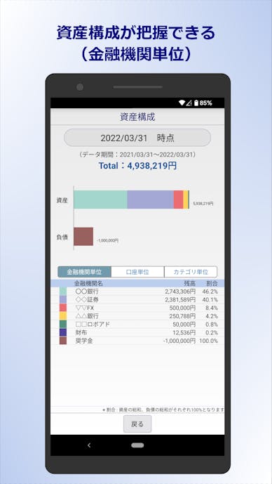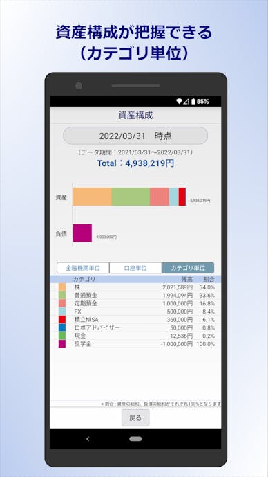 iPhoneユーザーはこちら Androidユーザーはこちら第15位. 資産管理・ポートフォリオ:資産だけでなく負債も登録できるのが便利!純資産の全体像を確認できる無料の家計管理アプリ