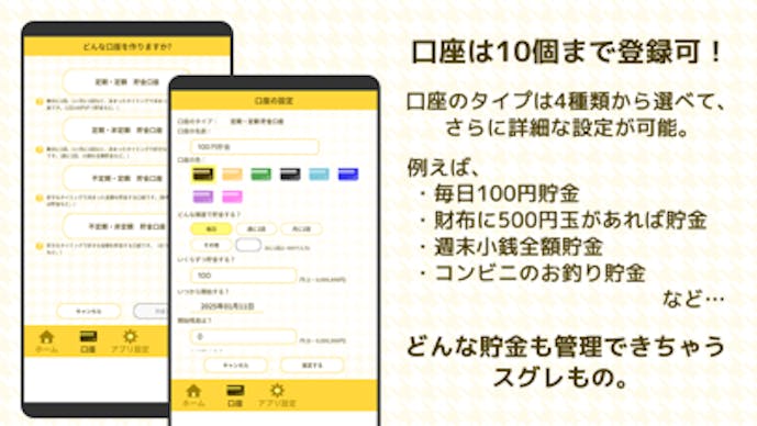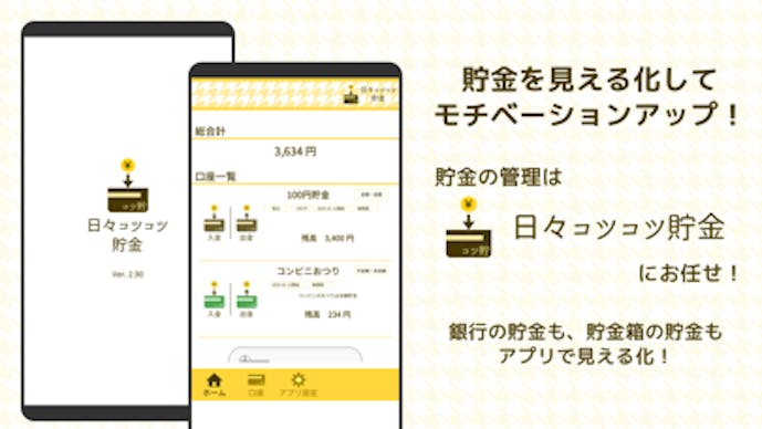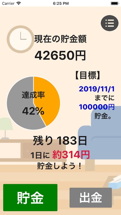 小さな目標をコツコツ達成しながら貯金を積み上げたい方のはじめの一歩目となるアプリです。