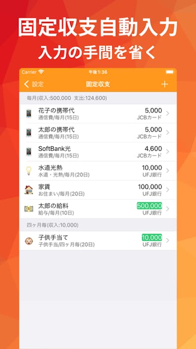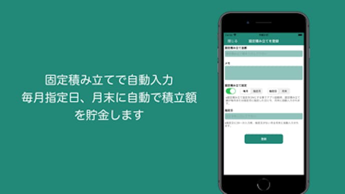 面倒な入力を省ける「固定積み立て」で、指定日に自動で金額を記録してくれる仕組みも搭載。