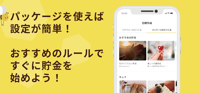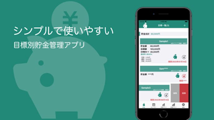 具体的な金額を決めて計画的に貯金したい、貯金のモチベーションを維持したいという方に使用してほしいのが貯金目標の達成を手助けしてくれるアプリ。
