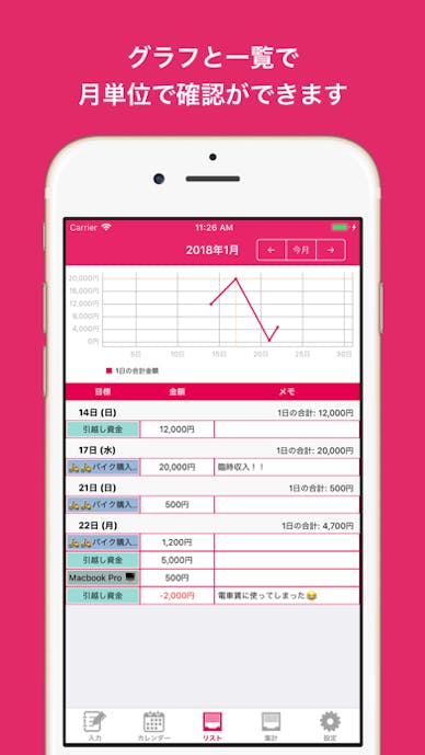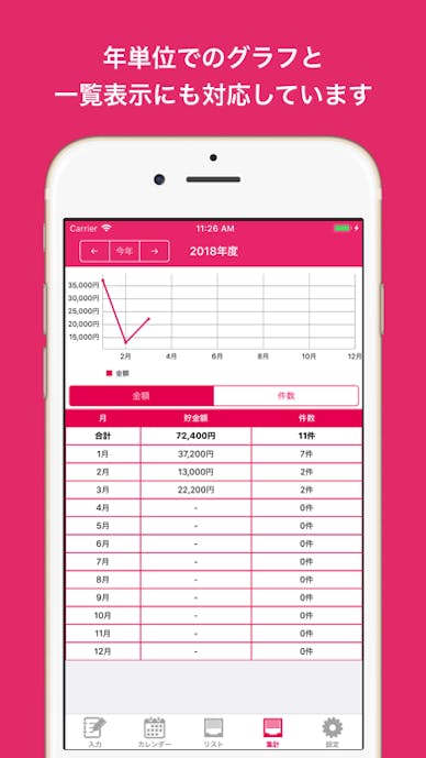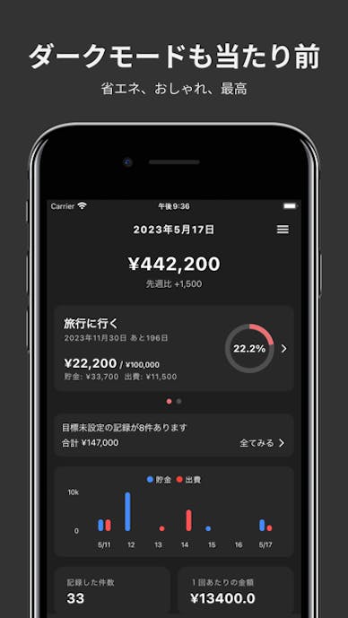 グラフで貯金が増えるのを実感できるのが嬉しいです!