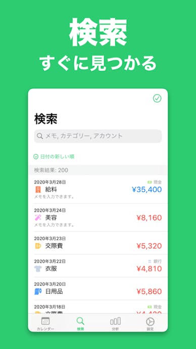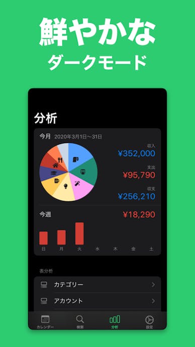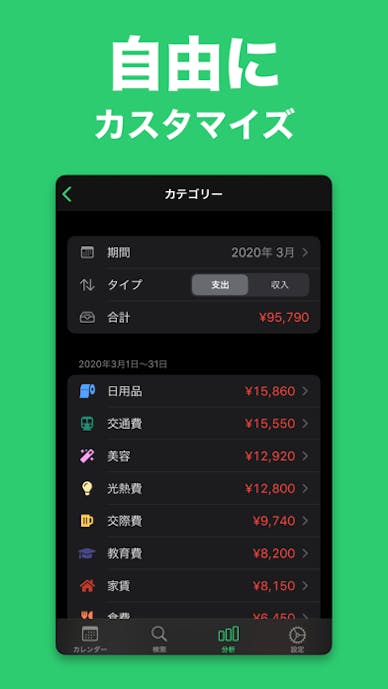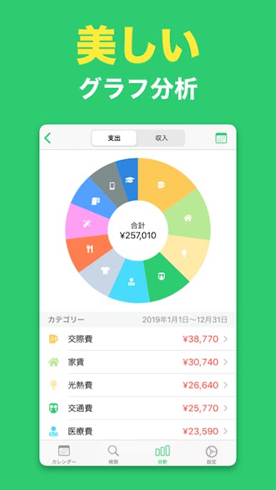 豊富なカテゴリや分析項目が用意されており、支出の傾向を振り返るのにも役立ちます。