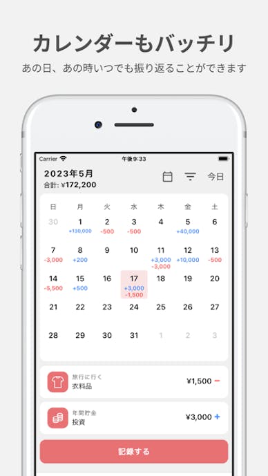 毎月の貯金金額のペースを把握して、グラフで成果を実感したい人におすすめの家計管理アプリです。