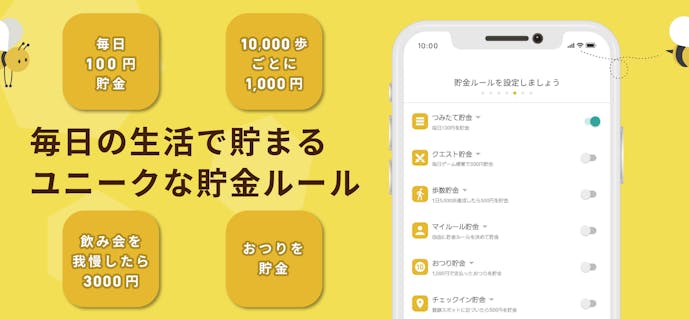 最大の特徴は、行動や生活習慣と連動させて貯金できる8つのルール。