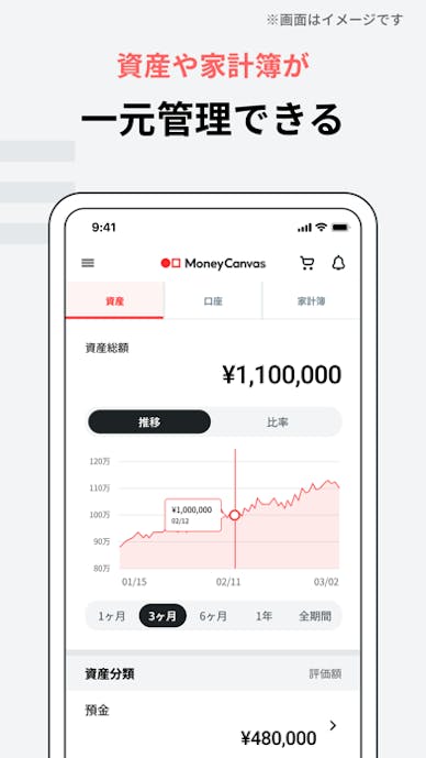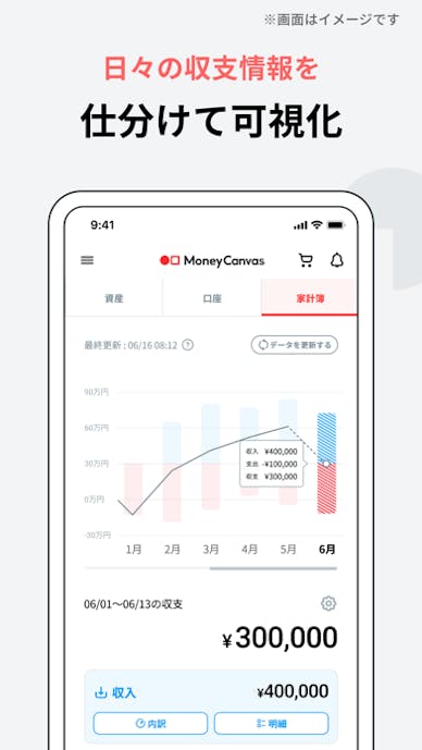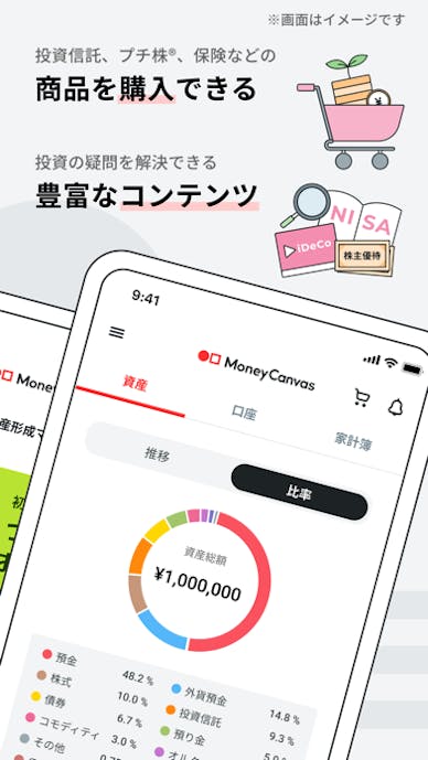 iPhoneユーザーはこちら第16位. Money Canvas:家計簿の自動集計と投資の積立を同じ画面で回せる!日々の収支と資産推移を一度に把握できる貯金管理アプリ