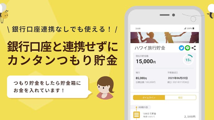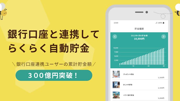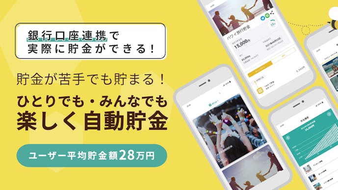 『finbee』は、目標額と期限を設定して自動で貯金を進められる貯金管理アプリ。