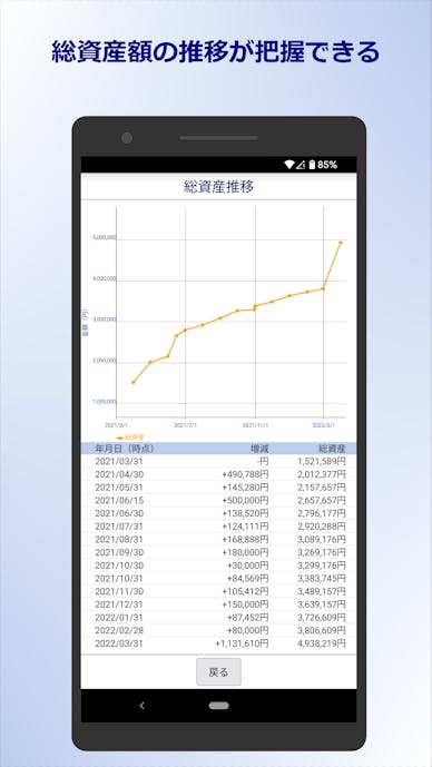 総資産ベースでコツコツ貯金を管理したい人におすすめの家計管理アプリ。