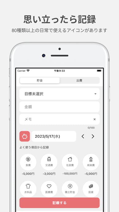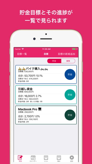 目的別に貯金を可視化できるのでモチベーションが続きます!