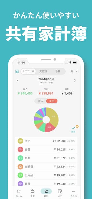グラフで収支やカテゴリ比率が見えるのが面白い!