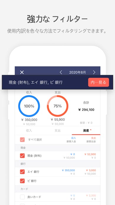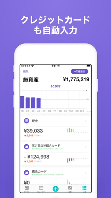 複数の口座やカードを一画面で見られるのが便利! 残高/資産の流れを直感的に把握できる通帳管理アプリ |