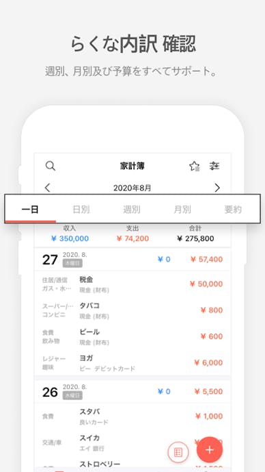 グラフで流れが一目でわかるから家計管理がどんどん楽しくなります!