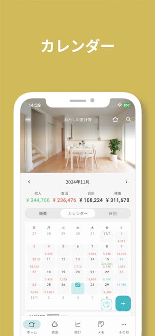 数字が色で分かるから、家計簿を眺めるのが楽しくなります!
