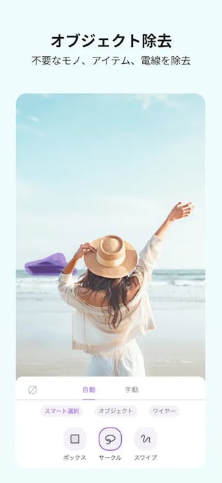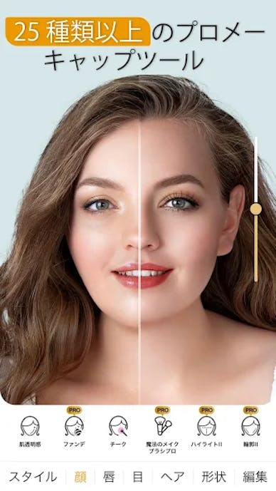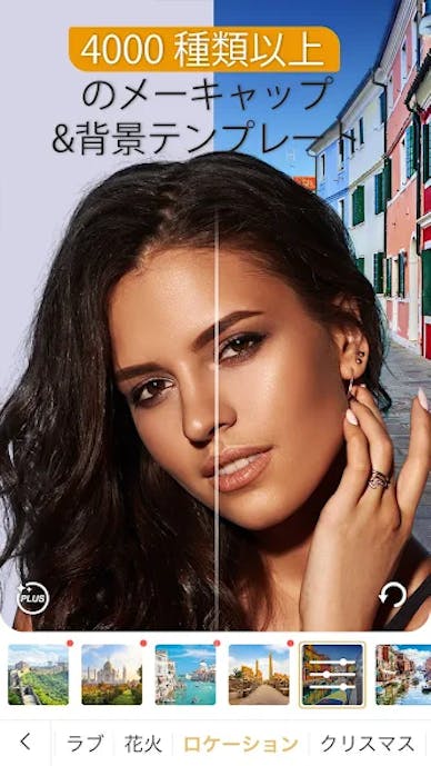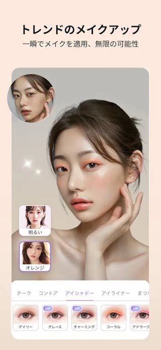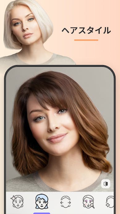「髪の色やヘアスタイルを変更」「ニキビ・シミを除去」「しわ消し」などが揃っており、ワンタップで自然に仕上げることが可能。
