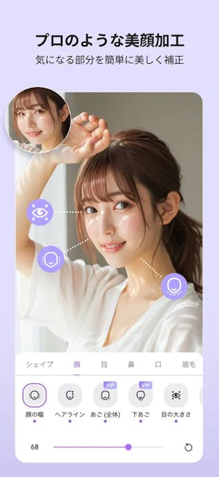 AIが顔や髪を理解して補正してくれるため、ナチュラルで清潔感のある仕上がりを実現できます。