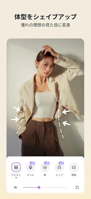 ナチュラルなレタッチが入り、オフィスカジュアルからスーツまで種類豊富なスタイリングが自動で反映。