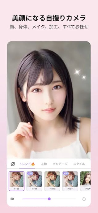 『BeautyPlus』は、黒髪の髪色加工はもちろん、証明写真の撮影や背景加工まで自由にできる多機能な黒髪補正アプリ。