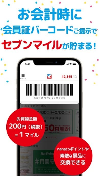セブンマイルが会員証バーコード提示で貯まるのも魅力で、対応店舗なら「ピピットスマホIYマイレジ」で商品をスキャンしながら会計できる便利さも。