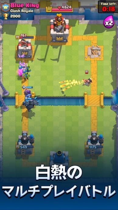『クラッシュ・ロワイヤル』は、カードでユニットを出し、守りと攻めを切り替えて戦う対戦型タワーディフェンスゲームアプリです。