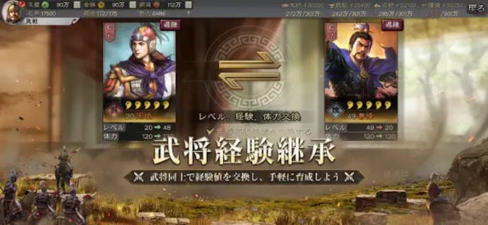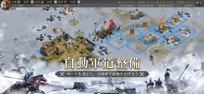 RPGのように英雄や兵士を育成しながら、領地運営で勢力を拡大するのがポイント。