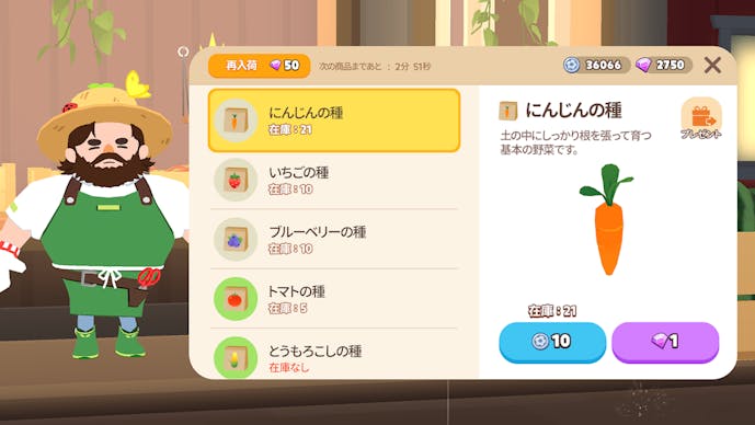 作物は雨が降らなくても枯れない設計で、天候を気にせずマイペースに育てられるのもポイント。