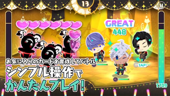 課題パートは“かわいいカードバトル”形式で進み、ちびキャラやオリジナル楽曲が登場。
