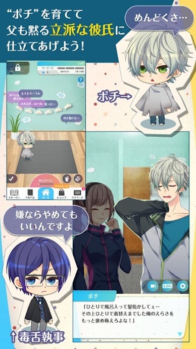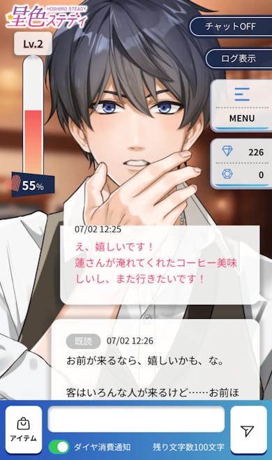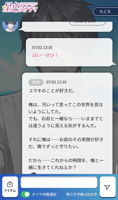 自分の言葉を入力して会話が進む自由入力スタイルで、まるで本当にメッセージを送り合っているようなリアルな恋愛体験が楽しめます。
