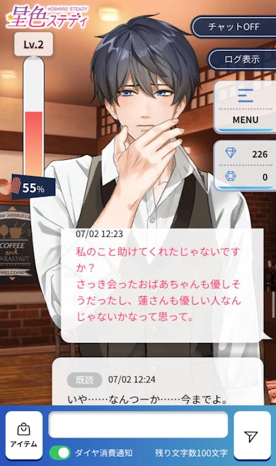 第1位. 星色ステディ:自分の言葉に彼が反応してくれるのが新鮮!リアルな恋の駆け引きを楽しめるチャット恋愛ゲーム
