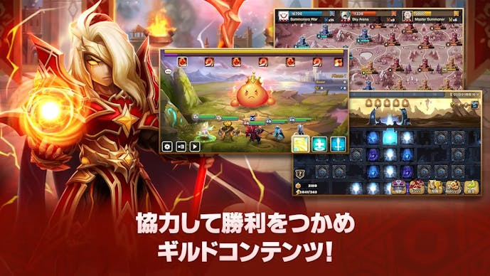 『ドラゴンエッグ』は、10人vs10人のリアルタイム共闘とコマンドバトルを楽しめる課金不要なギルドRPG。