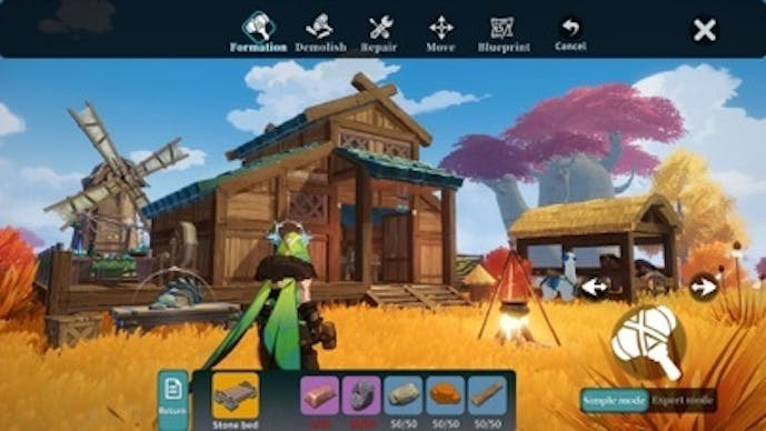 拠点やマイホームは、無課金でも100種類以上の素材で建築でき、地形や床のデザインまで自分好みにカスタマイズ可能。