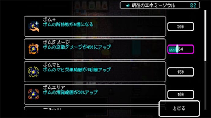 サイドボスや奇妙なミニボスとの戦闘も多く、Juice Shardsなどの素材を集めて強化を重ねる成長感が心地よいです。
