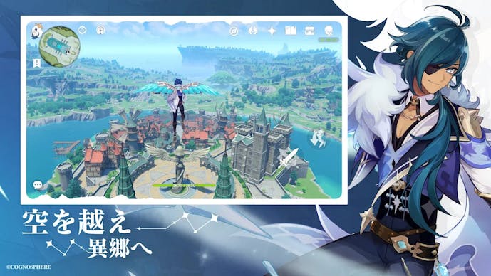 『原神〜空月の歌〜』は、広大なテイワット大陸を自由に旅するオープンワールドアクションRPGスマホアプリです。