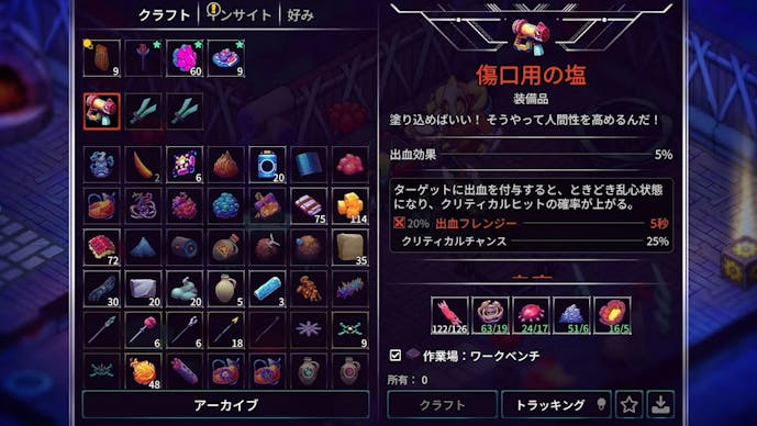 装備を強化するほどダメージを軽減でき、探索→採掘→クラフト→戦闘の流れが自然と戦略になります。