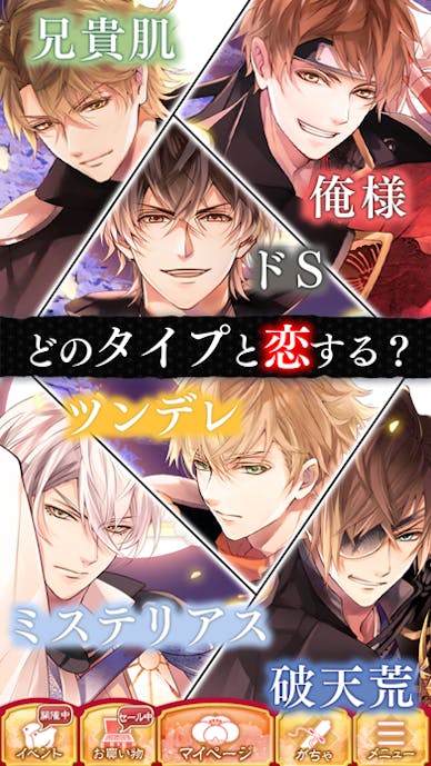 - 登場キャラ:俺様/クール/包容力/ミステリアス/やんちゃ系 など