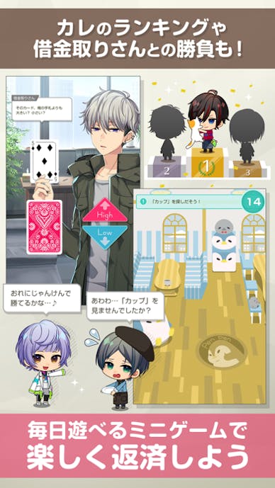 登場する彼は、ポンコツ幼なじみや借金取りなど個性豊かであなたの好きなタイプが見つかるはず。