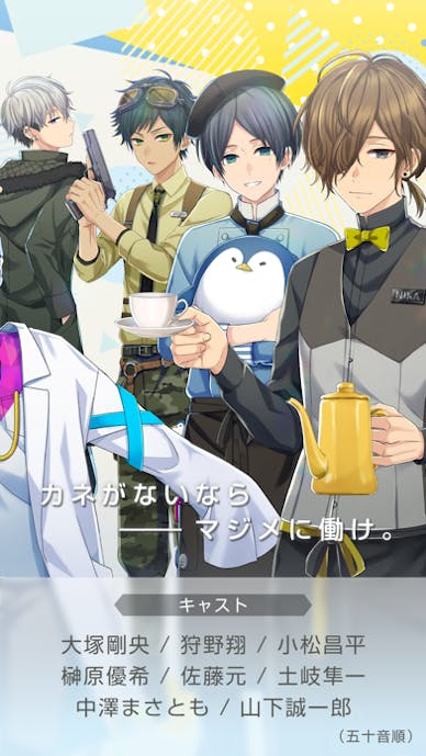『ミリオンダラーボーイズ』は、借金100億円を返すためにイケメンたちとカフェを経営しながら恋を育てる無料恋愛ゲーム”。