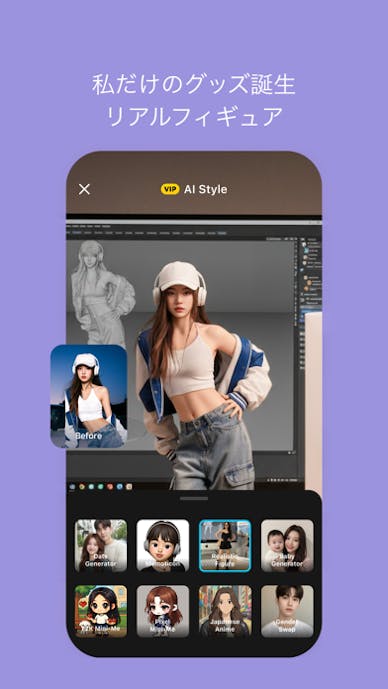 好みのスタイルを選ぶだけで、AIが自動で顔の位置を認識し、スタンプやメイクなどを自然に反映してくれます。