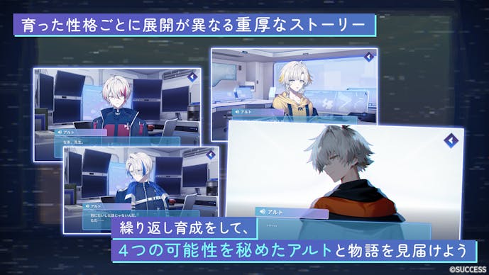 - 育成の方法:お世話/着せ替えでパラメータ育成
