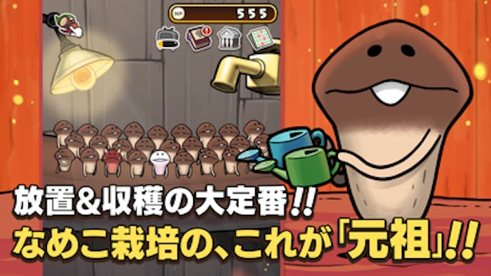 『元祖なめこ栽培キット』は、忙しくてもスキマ時間にコツコツ遊べる放置&育成ゲームアプリ。