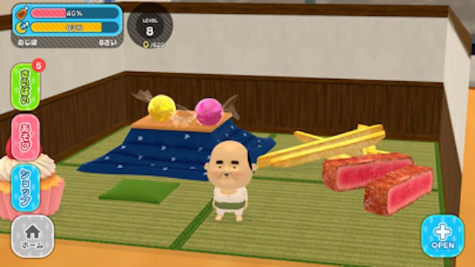 アプリを閉じてもおじぽっくるは気ままに生活を続けるため、短時間でも進行が楽しめるのが嬉しい特徴です。