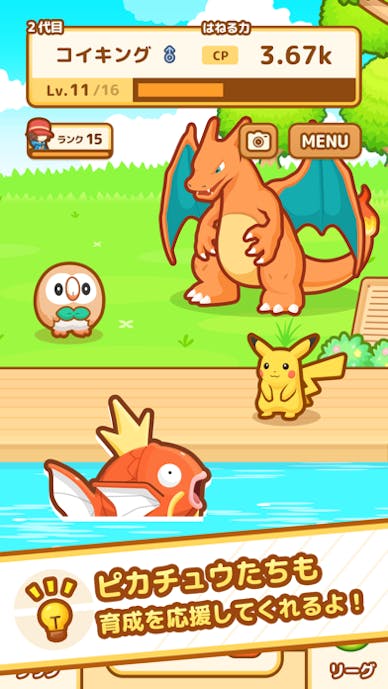 『はねろ!コイキング』は、最弱ポケモン・コイキングを“最強ジャンパー”へ育て上げるシンプル育成ゲーム。