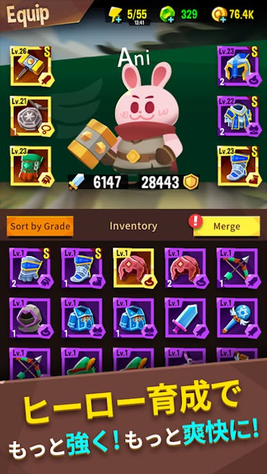 装備する武器やスキルの選択次第でプレイスタイルが大きく変化し、ヒーローの育成によって着実に強化可能。