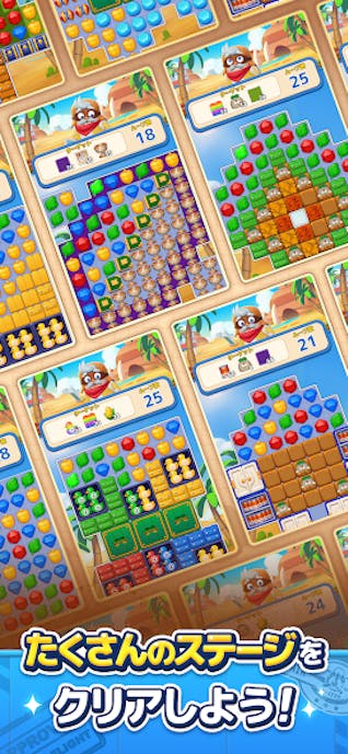 同じピースを3つ以上つなげて消すだけのシンプルなルールで、誰でもすぐに気持ちよい連鎖の快感を味わえます。