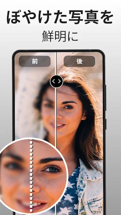 ぼやけた写真をワンタップでクリアにし、粒子状になった低解像度の画像も瞬時に整えるのが特徴です。