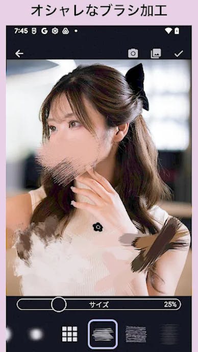 ブラシ型モザイクは、指でなぞった部分だけをピンポイントで隠せる仕組み。