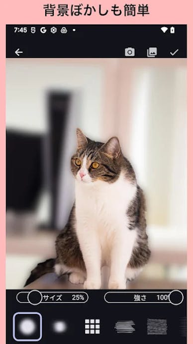 背景だけを自動で検出してぼかすこともでき、被写体をくっきり残したまま自然な印象に仕上げられます。