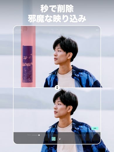 AIによる背景消しや不要物の除去、色調整まで直感操作で仕上げられるのが魅力です。